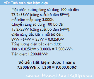 Tính toán hiệu quả tiết kiệm năng lượng khi thay thế bằng bộ đèn huỳnh quang T5 Philips 28W