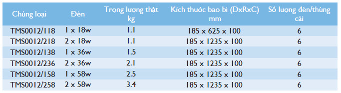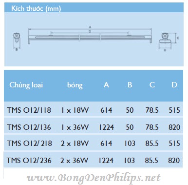 Thông số kỹ thuật bộ máng đèn huỳnh quang Philips TMS 012